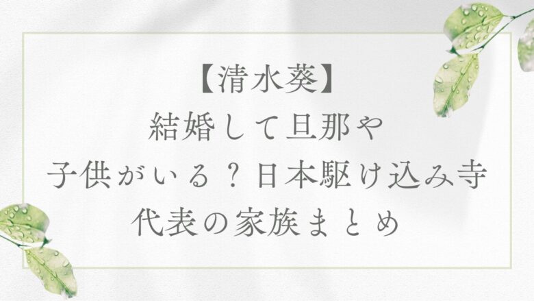 今回は、日本駆け込み寺の2代目代表・清水葵氏の結婚や旦那、子供の有無、そして驚きの家族背景について、最新情報を分かりやすくまとめました!